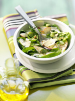 Salade d'épinard, pomme, fèves, parmesan et huile d'argan