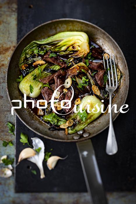 Pak choï et onglet de bœuf à la sauce d’huître et à l’ail